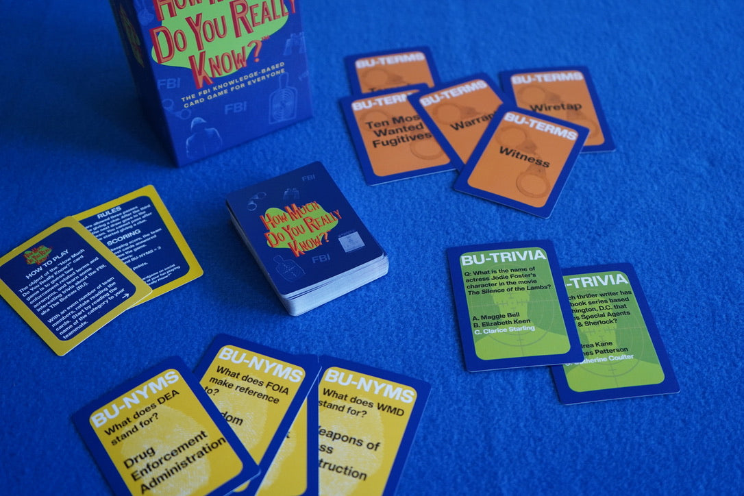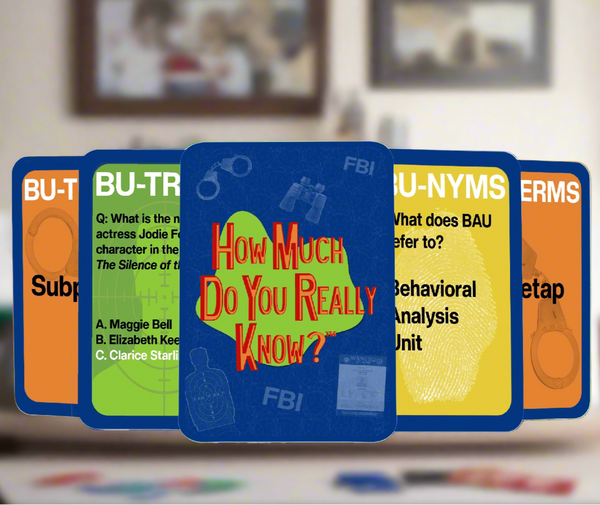 The object of the How Much Do You Really Know?® card game is to guess law enforcement-related terms and acronyms, while learning interesting trivia about the FBI, aka The Bureau (BU).